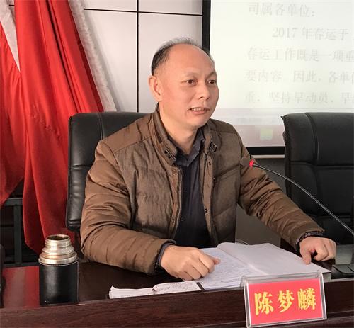 公司董事兼副總經理陳夢麟和肖立文先后宣讀了《關于認真做好2017年春運工作的通知》和《2017年春運安全工作實施方案》。2017年我司春運按照“安全第一、服務至上、保障有力、控收增收”的總體要求,堅持早動員、早部署,從組織領導、運輸組織、安全監(jiān)管、規(guī)范經營管理、提升應急水平、提高服務質量等八個方面對春運工作進行了重點安排,以確保各項春運生產任務順利完成。為確保春運安全,今年春運我司將以“安全第一、預防為主、綜合治理”為方針,嚴格參運駕駛人和車輛資質準入與管理,加大隱患排查治理力度;以全面落實企業(yè)安全生產標準化和實行安全生產經營問責辦法為契機,與安全百日行動有機結合起來,進一步落實公司安全生產責任制和建立安全管理長效機制,提升公司本質安全和保障能力;以北斗衛(wèi)星定位監(jiān)控為主要抓手,實施科技興安,嚴查重處違法違規(guī)行為,確保公司春運安全目標全面實現。
