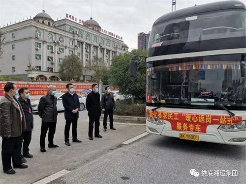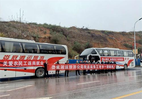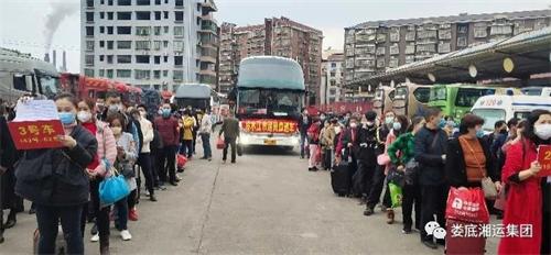 為貫徹落實(shí)中央和省、市關(guān)于疫情防控和全力做好農(nóng)民工返崗運(yùn)輸服務(wù)保障的決策部署,針對農(nóng)民工返崗生產(chǎn)企業(yè)復(fù)工緊迫的情況,在市委市政府、行業(yè)主管部門的大力支持以及各縣市人民政府和交通、人社等部門的精心組織下,我市啟動“點(diǎn)對點(diǎn),一站式”客運(yùn)包車,助力農(nóng)民工安全有序返崗。作為承擔(dān)各縣市農(nóng)民工返崗復(fù)工包車運(yùn)輸任務(wù)的主力軍——婁底湘運(yùn)集團(tuán),從2月18日開始,我司各客運(yùn)單位已調(diào)度70臺次定制包車,分20批安全運(yùn)送1662名婁底、新化、漣源、雙峰、冷江籍農(nóng)民工前往長沙瀏陽、浙江義烏、福建、廣州、東莞、貴州、?诘鹊胤祶弿(fù)工。