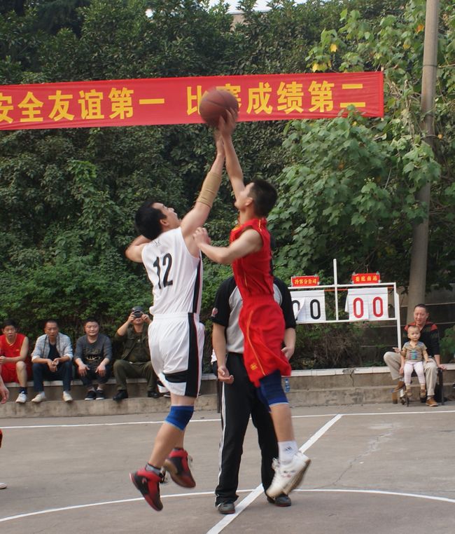 10月21日上午8時,雙峰分公司代表隊和南站代表隊爭奪第三名的決賽開賽,隨著哨聲響起,比賽開始了。兩個代表隊的球技水平旗鼓相當,勢均力敵,比分交替上升,第一節(jié)和第二節(jié)雙峰隊均以1分之差優(yōu)勝南站隊,第三節(jié),比賽雙方仍處于拉鋸狀態(tài),可謂是棋逢對手,并駕齊驅(qū),難分上下,啦啦隊的吶喊聲、加油聲、此起彼伏,氣氛既緊張激烈又輕松愉快,球員們的精彩球藝和拼搏精神不時博得場邊觀眾的陣陣喝彩,氣氛非;钴S。第三節(jié)比賽南站隊代表隊轉(zhuǎn)敗為勝,反勝1分。第四節(jié)比賽,南站代表隊以其隊員平均年齡低于對方的優(yōu)勢,發(fā)揚氣可鼓不可竭的精神,發(fā)起攻擊,奪取進攻主動權(quán),把得分慢慢拉開,最終以41:34分奪得了本屆籃球賽的第三名。